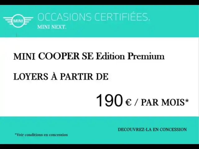 - Version : Cooper SE 184ch Edition Premium BVA 5CV
