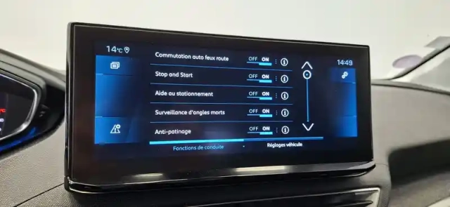 • Peugeot i-Cockpit avec combiné tête haute numérique reconfigurable, écran tactile capacitif 10" et volant compact multi-fonctions